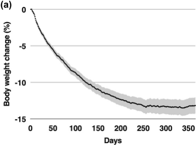 A lot can be said about the reasons why the trend goes down such as non adherence by carb creap etc but my argument is about total fat availability. This is the combination of both your own body fat and dietary fat that is able to reach your liver (while being low on glucose). The study also shows weight trend over time.