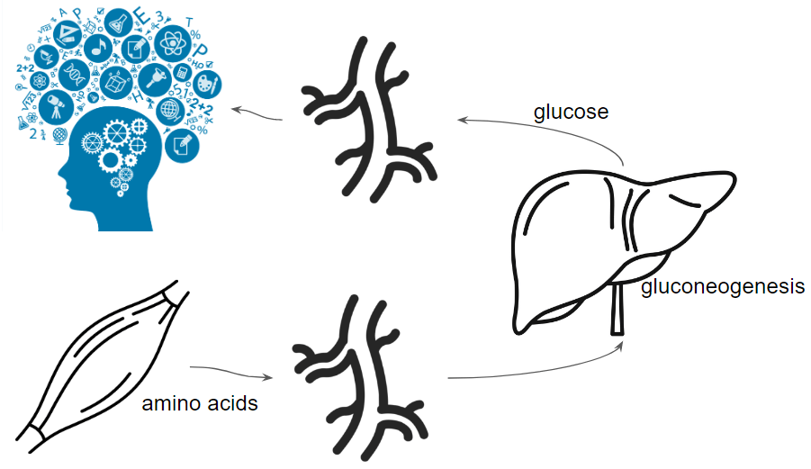 The whole system has to adapt to rearrange how it provides sufficient energy to the brain and thereby finds a new equilibrium to spare amino acids.