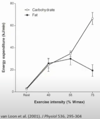 We know that under high intensity the contribution of fat to energy diminishes. It is not a great amount but still, it reduces.