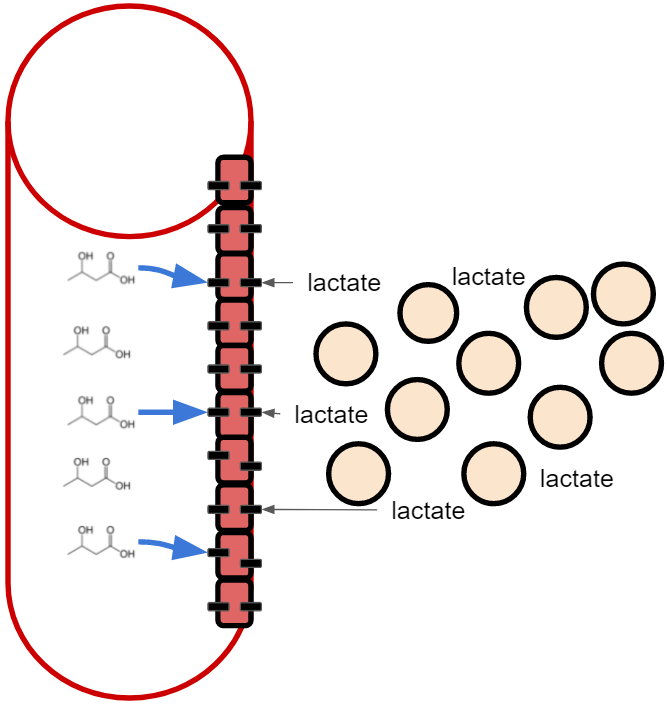 Increasing lactate in the cytosol also increases monocarboxylic transporter 1 (MCT1) membrane expression. It does this to get rid of the lactate because it brings down the pH, but by doing so it opens the gates through which BHB can enter the cell.