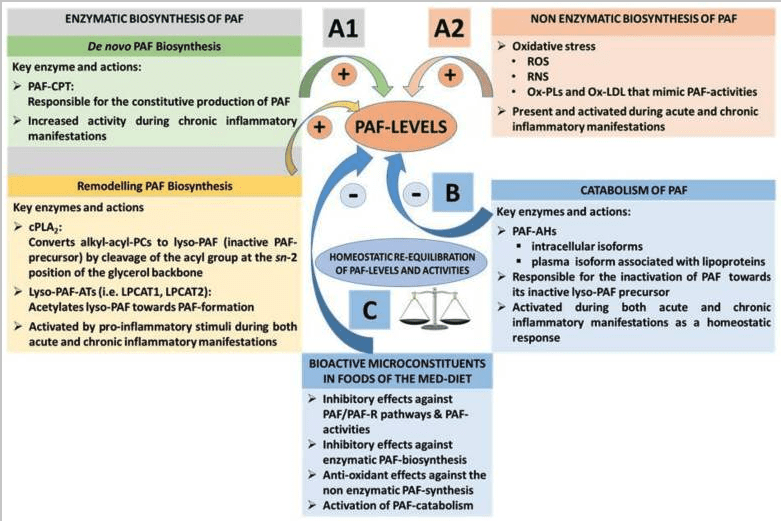 “However, production of PAF and PAF-like molecules can become elevated and/or dysregulated during extended periods of immune activation and chronic inflammation-related disorders”