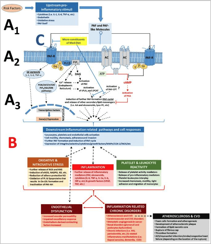 “If unresolved, the PAF cycle-related inflammatory activation of endothelial cells leads to tight adhesion of leukocytes on the activated endothelium and subsequent migration of these leukocytes and Ox-LDL to the subendothelium.”
